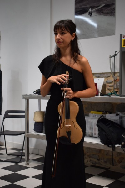 Si è prestata per far questo una professionista del settore, Elisa Scaramozzino. Violinista di professione, diplomata in Lituania che ha conseguito master in Svizzera e a Mosca. Svolge attualmente attività solistica e cameristica e collaborazioni con diverse orchestre tra cui quella del teatro lirico di Cagliari, del teatro Carlo Felice di Genova, orchestra Aiden di Bolzano, quella svizzera italiana OSI, Pomeriggi musicali di Milano fino all’orchestra Cherubini del Maestro Muti.